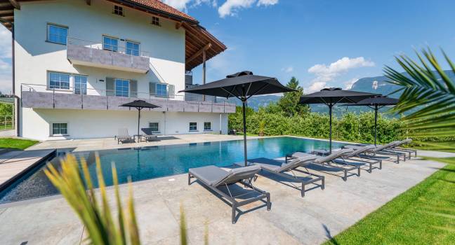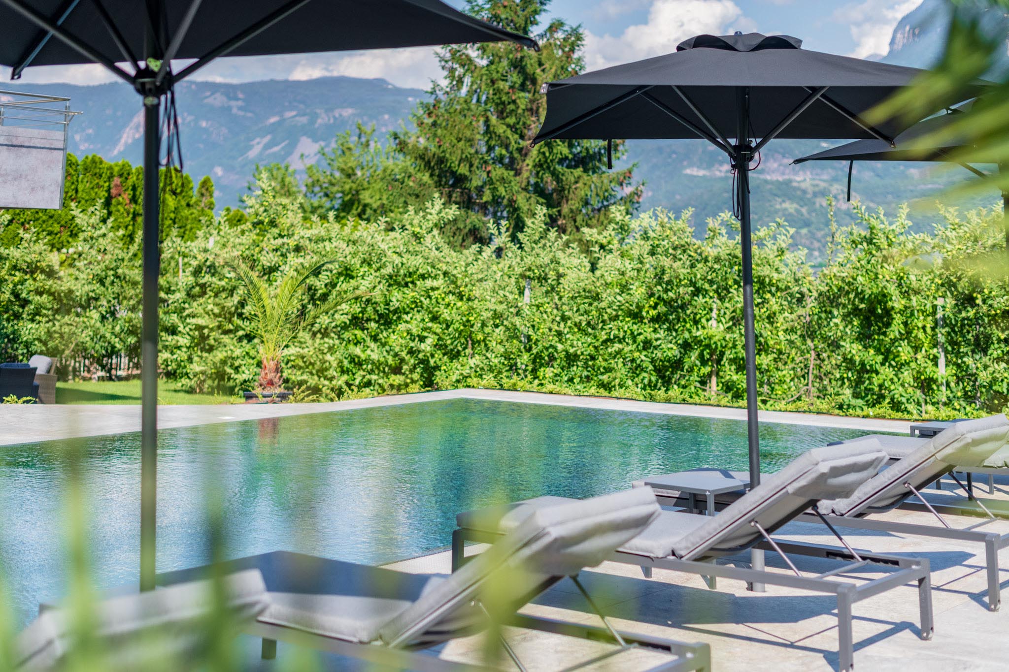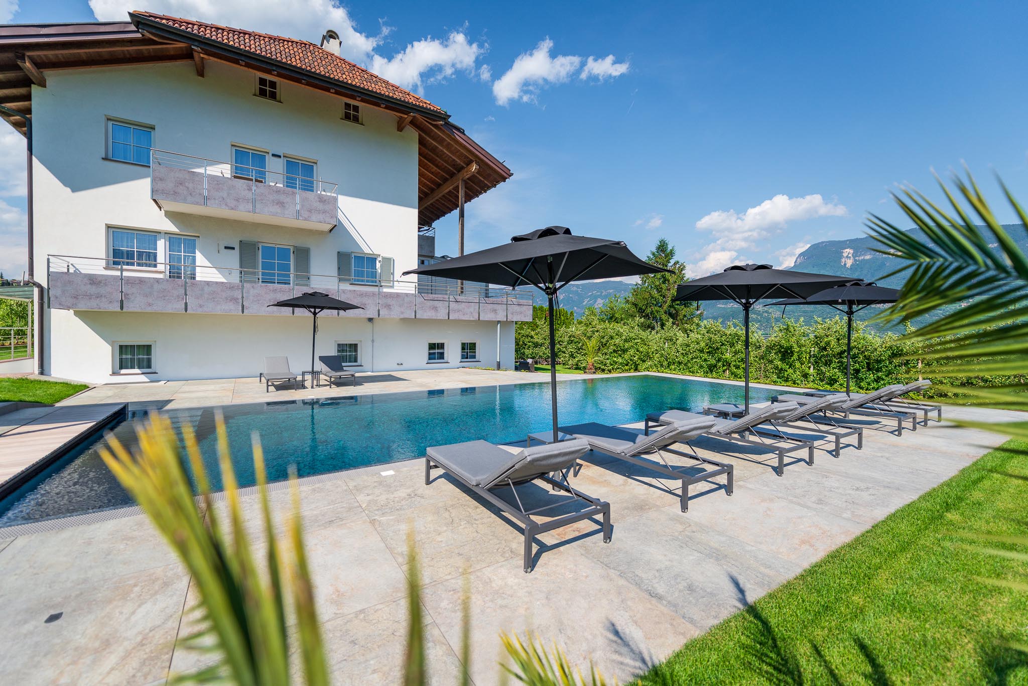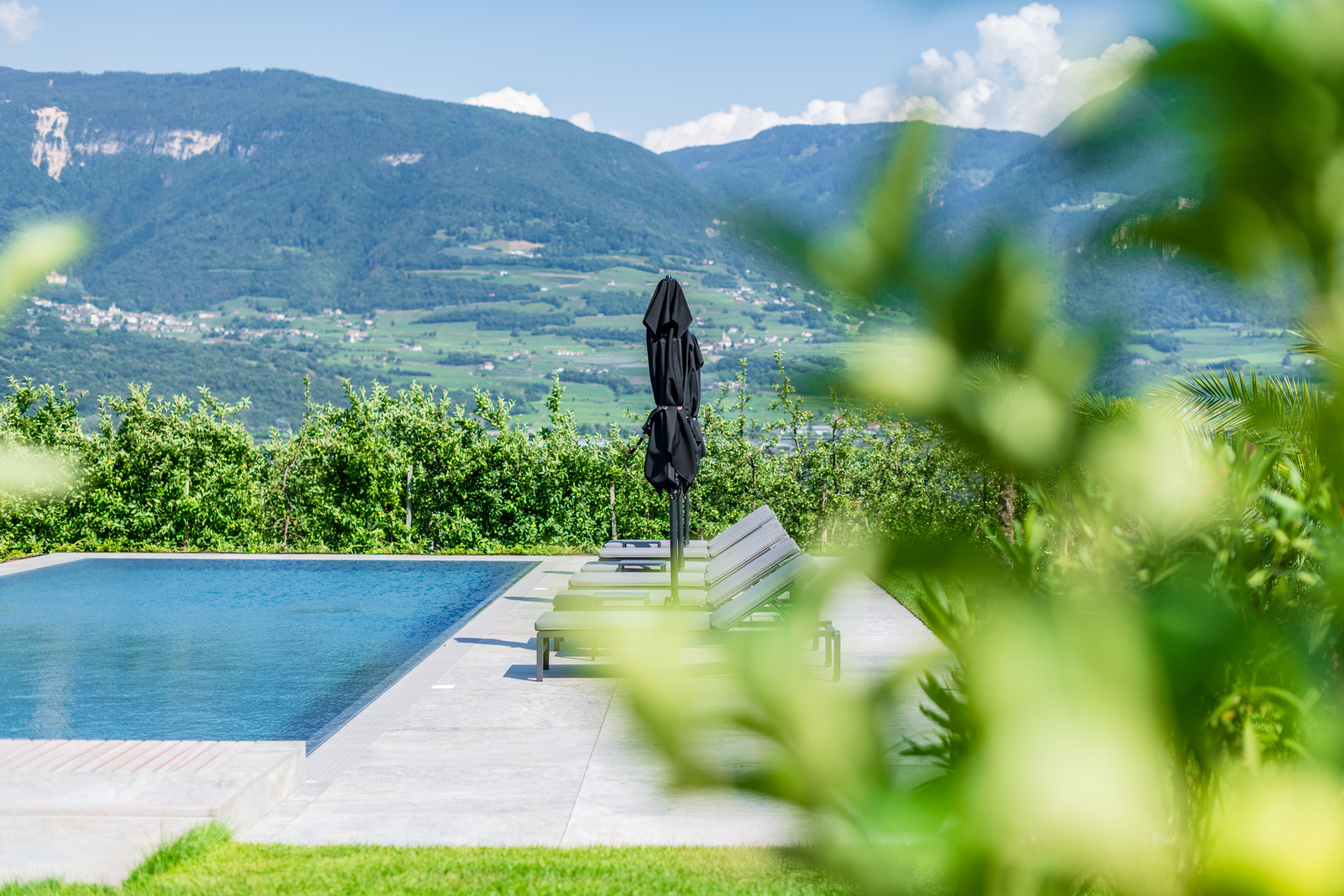 Ruhig, sonnig, mit großem mediterranen Garten und großem Panoramaschwimmbad bietet unser Haus am südlichen Ortsrand von Tramin Urlaubern eine erholsame Unterkunft. Zwei große Liegewiesen umrahmen den Hof, so dass Sie jederzeit Ihren persönlichen Rückzugsort zum Entspannen finden. Das große Freischwimmbad ist mit Salzwasser befüllt, wodurch die Umwelt und auch die Haut geschont werden.