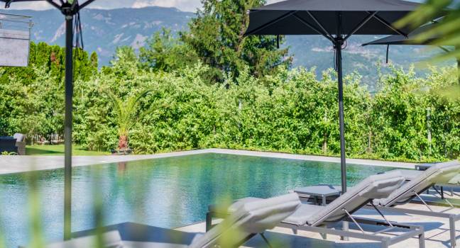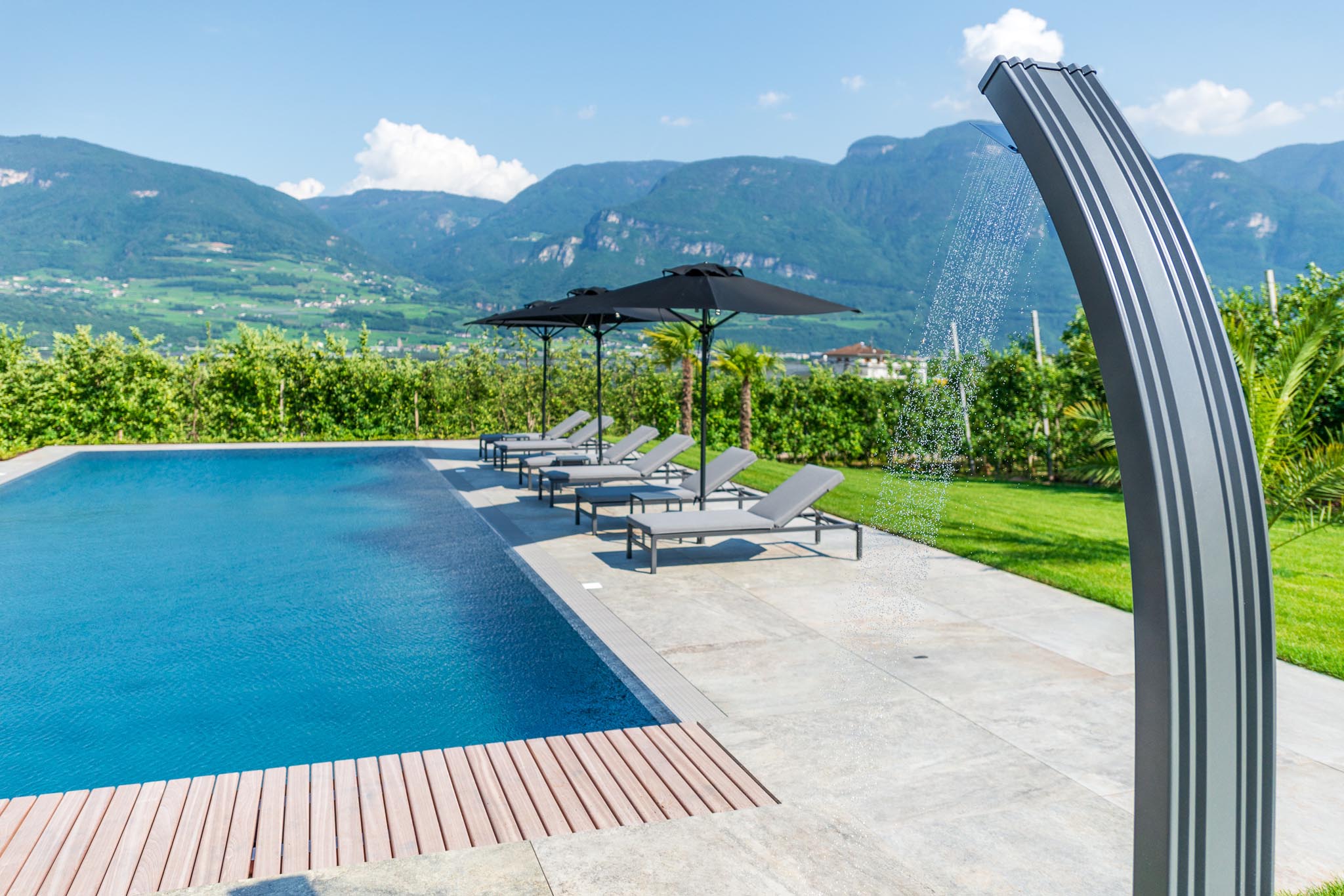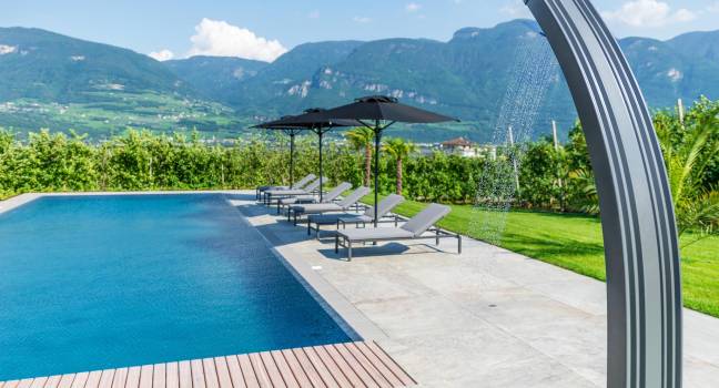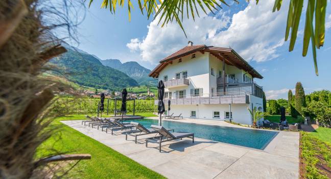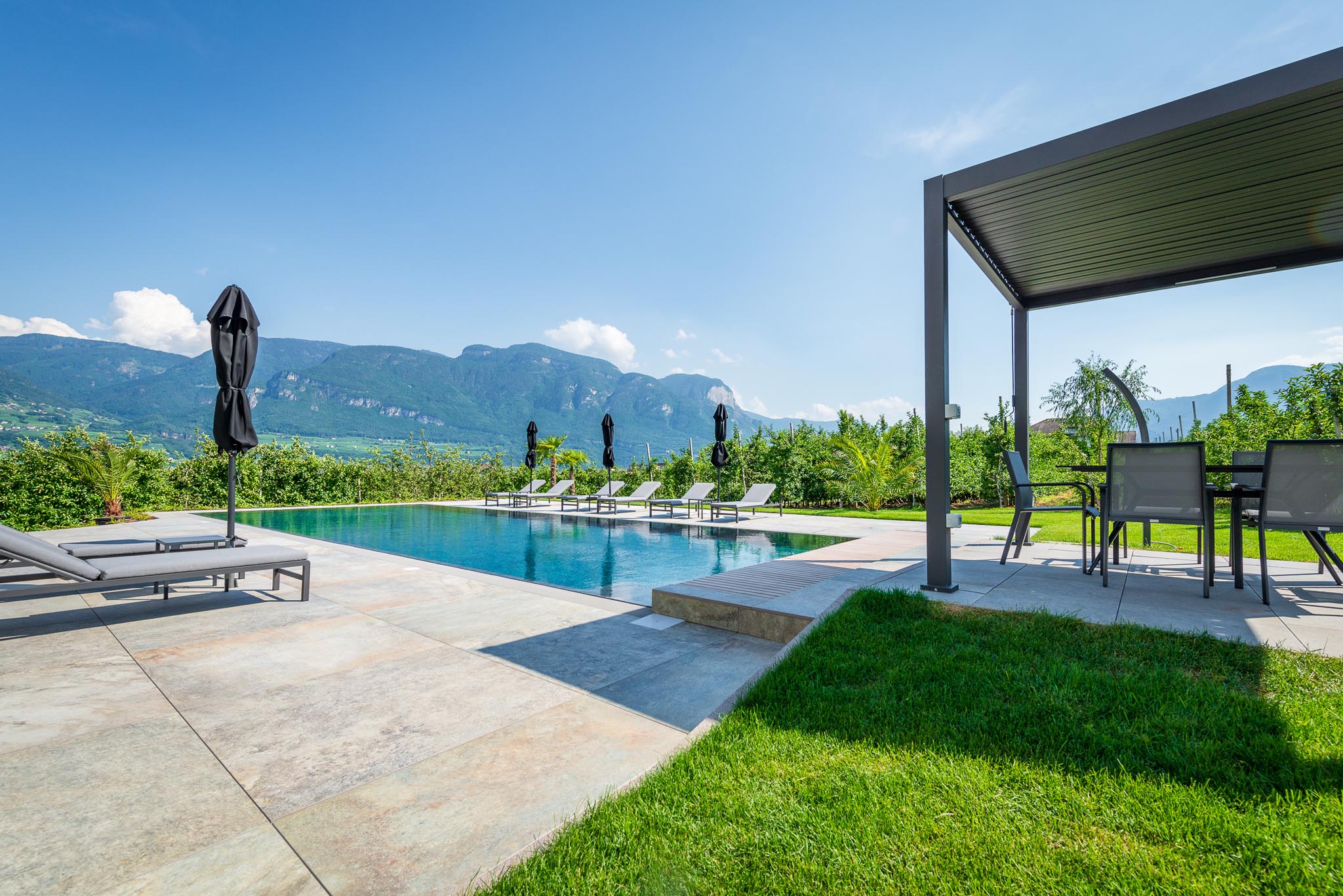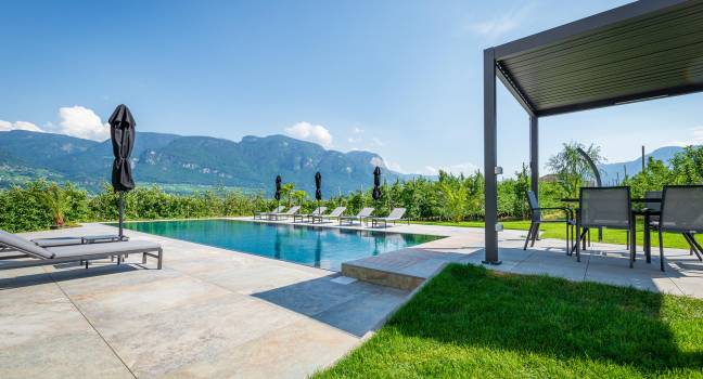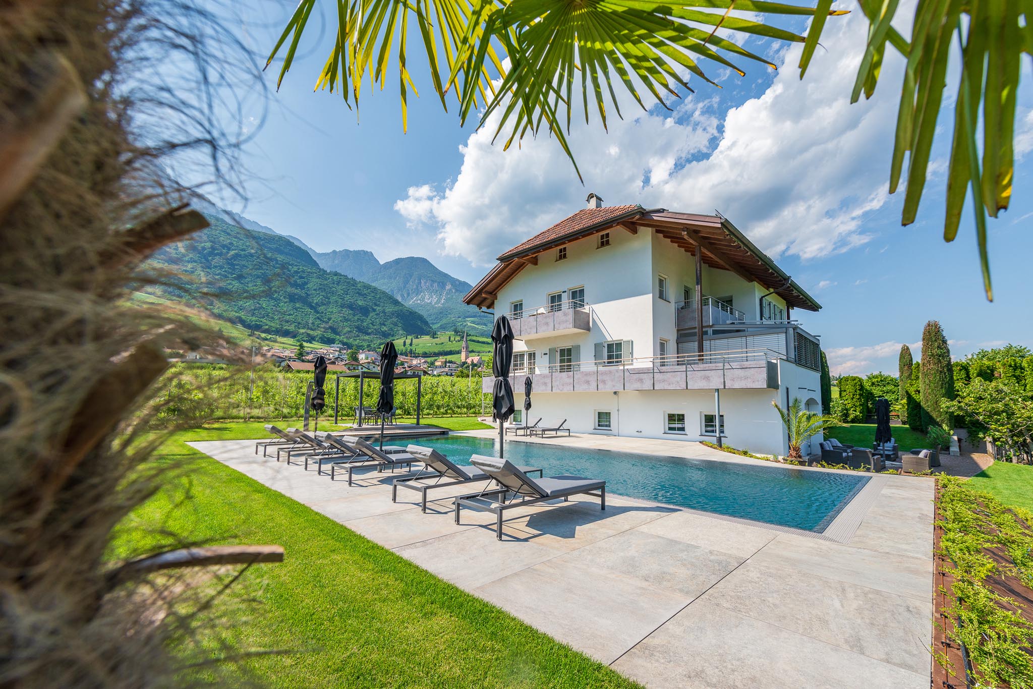 Ruhig, sonnig, mit großem mediterranen Garten und großem Panoramaschwimmbad bietet unser Haus am südlichen Ortsrand von Tramin Urlaubern eine erholsame Unterkunft. Zwei große Liegewiesen umrahmen den Hof, so dass Sie jederzeit Ihren persönlichen Rückzugsort zum Entspannen finden. Das große Freischwimmbad ist mit Salzwasser befüllt, wodurch die Umwelt und auch die Haut geschont werden.